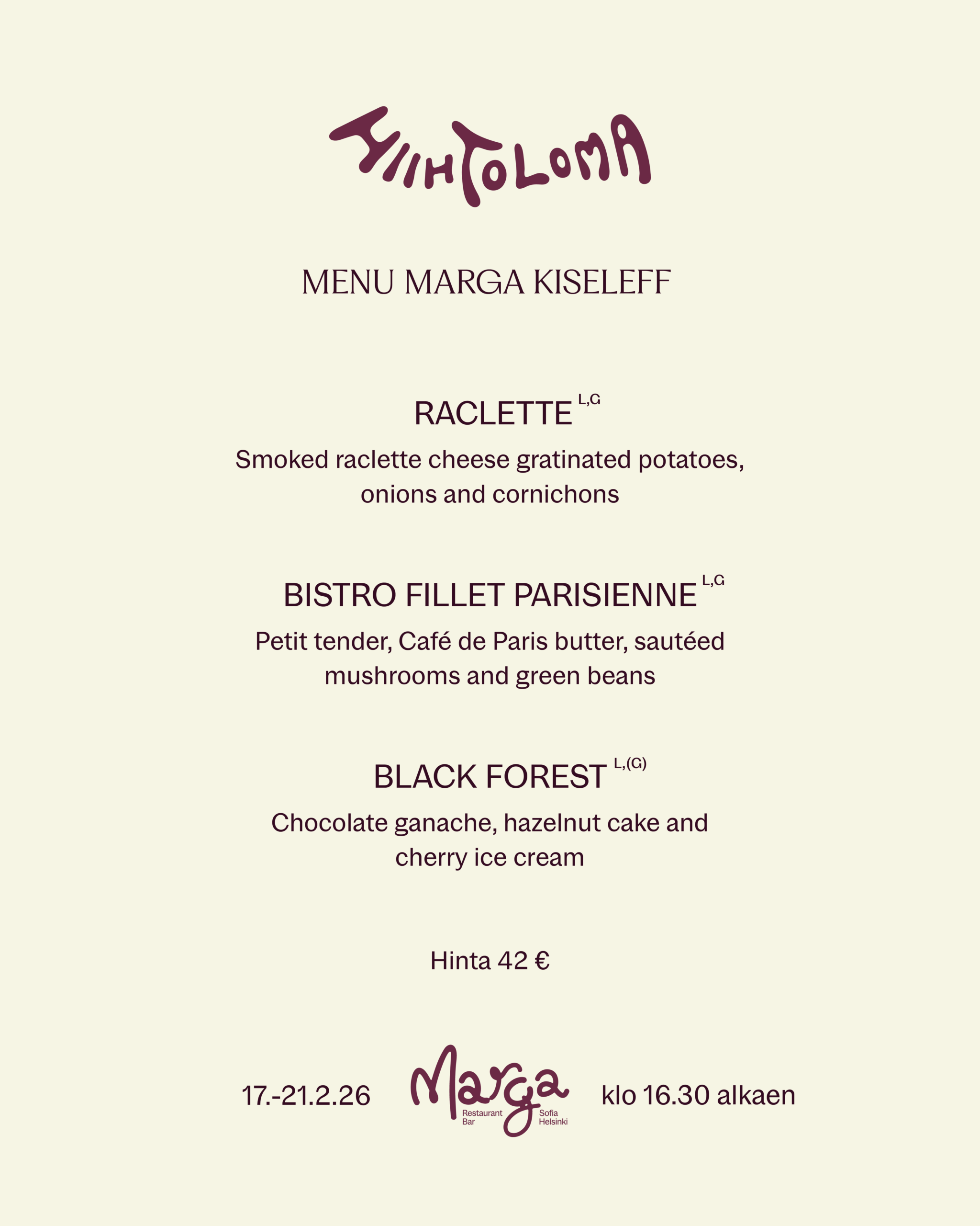 Our restaurant is named after Marga Kiseleff, whose grandfather, merchant Fjodor Kiseleff, gave his surname to the building and redesigned it into its current form in 1822.